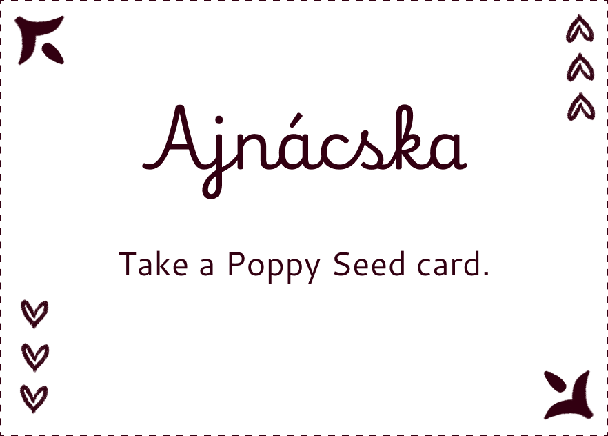 Saint Lucy (Lucia of Syracuse) is honored on 13 December. In Hungarian folklore, many traditions and rituals are associated with this day. This analog single-player game is inspired by these. You play as a craftsman who must make Lucy's chair (Lucaszék or Luca széke) to be able to banish the witch of the village. You must work with nine different types of wood. Additionally, you should collect as many poppy seeds as you can, so when it comes to the chase, you have a chance to escape from the claws of the witch. Before you have to face your fate, your lover's identity is also revealed, who might be of help before the final moment. This game tries to blend the real and the game world.